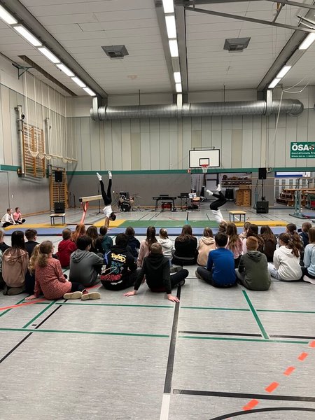 Um das Halbjahr ausklingen zu lassen, veranstalteten die 6. Klassen am letzten Schultag vor den Winterferien eine Show, in der sie ihre Talente präsentierten. Egal ob arabischer Gesang, Hip-Hop Tanz, das Spielen von zahlreichen Musikinstrumenten oder Turnen am Barren, die Schüler hatten von allem etwas zu bieten. Durch das Programm führten Clara und Louisa aus der 6b und für die Tontechnik bedanken wir uns bei Herrn Werner. Nach dieser gelungenen Veranstaltung, gingen die Schüler mit einem Lächeln in die Ferien.